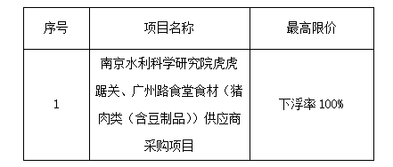3、项目名称:南京水利科学研究院虎踞关、广州路食堂食材(猪肉类(含豆制品))供应商采购项目