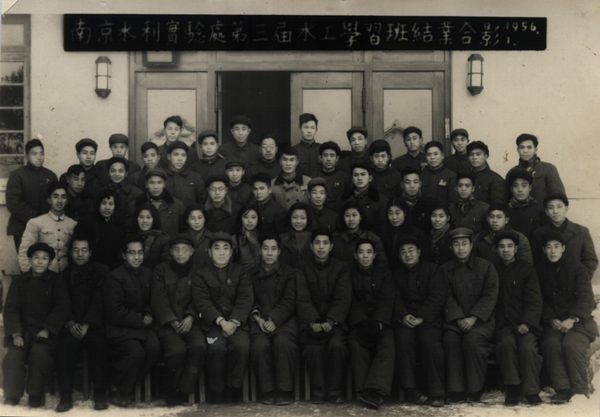 五十年代初由于我国水利、水运、水电事业迅速发展,水利科技人才相当缺乏。在这种情况下,我院先后开办了多期水文技术人员培训班、土工试验学习班,水工试验学习班,系统讲授有关专业技术知识和试验操作技术。这批学员回到本单位后大多在本地区、本系统的水利科学研究所或水工试验室、土工试验室中发挥了骨干作用,许多人在科研业务工作或科研管理工作中作出了重要贡献,走上了各级领导岗位。图为1956年1月举办的第三期水工试验学习班结业合影 (前排左1严镜海,左2陈惠泉,左4姜国干,左5张赓绪,左6毛昶熙,左7陈椿庭,右1李保如,右3范家骅,右4黄胜)