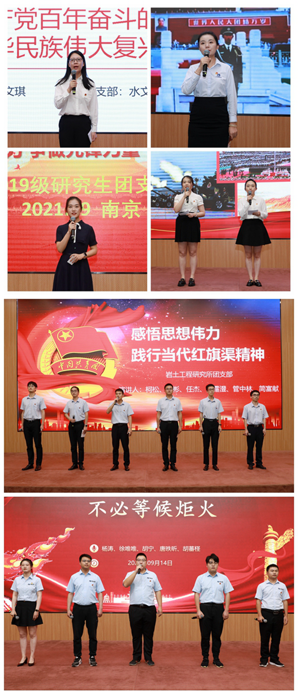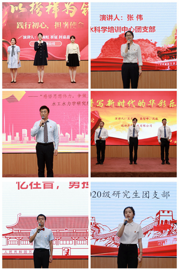 会场 为深入学习贯彻习近平总书记在庆祝中国共产党成立100周年大会上的重要讲话精神,推动党史学习教育深入开展,9月14日,我院举办“感悟思想伟力 争做先锋力量”青年演讲比赛,共有13个团支部选送的15个作品36名青年参加比赛。副院长李云出席活动并讲话。 李云副院长在讲话中指出,本次演讲比赛是推动党史学习教育走深走实的重要举措,是组织青年对习近平总书记“七一”重要讲话精神再学习、再领悟的重要方式,演讲主题鲜明、形式多样、感染力强,展现了我院青年奋发向上、积极进取的良好精神风貌。他强调,团员青年是党的助手和后备军,在我院发展中发挥着重要作用,要进一步学习百年党史,传承伟大建党精神,从党史中汲取奋进力量,坚持“四个面向”,练就过硬本领,提高综合素质,以实际行动为我院高质量发展贡献青春力量。 比赛中,选手们紧扣学习贯彻习近平总书记“七一”重要讲话精神,围绕“感悟思想伟力 争做先锋力量”主题,结合水利科研实际,以声情并茂、慷慨激昂的演讲,讴歌了党的百年奋斗历程与丰功伟绩,展现了中国共产党员的伟大建党精神,真情讲述了水利科研工作者艰苦奋斗、锐意创新,推动水利事业发展的先进典型和感人事迹。精彩的比赛感染了现场的每一位观众。 经过激烈角逐,勘测设计院团支部吴浩震、荀绚、葛秋易、徐晓烨、高郢、苗晨阳演讲的《建党百年正青春 水利发展新征程》,材料结构研究所团支部何建新、冯妍演讲的《感悟思想伟力 不负青春韶华》,职能部门联合团支部谷晨、李健演讲的《传承伟大建党精神 赓续红色血脉》获得一等奖;南京瑞迪高新技术有限公司团支部李雨虹、崔征、封嘉蕊演讲的《以榜样为“镜”——践行初心 担当使命》,水科学培训中心团支部张伟演讲的《用平凡的坚守擦亮瑞迪五彩的底色》,水工水力学研究所团支部刘思恩演讲的《做一个有志气有骨气有底气的青年水利人》,南京瑞迪高新技术有限公司团支部王文银、秦智峰、沈航演讲的《谱写新时代的华彩乐章》,河流海岸研究所团支部丁宏伟演讲的《忆往昔 勇担当》,2020级研究生团支部隗岚琳演讲的《有奋起的青年 方有奋进的中华》6个作品获得二等奖。南京瑞迪高新技术有限公司团支部荣获优秀组织奖。 各研究所、相关职能部门与企业负责人和部分青年职工代表现场观看比赛。